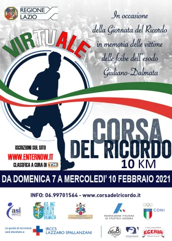 La manifestazione, ideata ed organizzata dall’ A.S.D. Atletica Asi Roma, si svolgerà nelle giornate che vanno da domenica 7 a mercoledì 10 febbraio, ed è inserita nelle commemorazioni del ‘Giorno del Ricordo’ istituite dal Governo Italiano per ricordare la tragedia delle foibe e l’esodo delle popolazioni italiane da Fiume, dall’Istria e dalla Dalmazia.