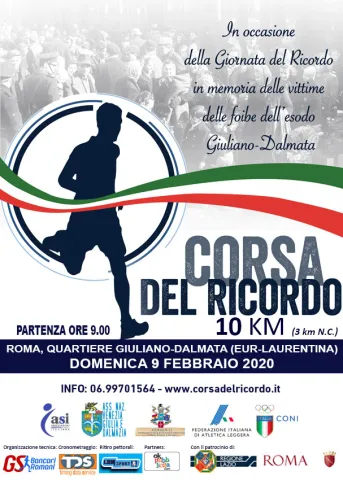 La Corsa del Ricordo è ormai un atteso appuntamento del podismo romano inserito nel quadro delle commemorazioni della Giornata del Ricordo che commemora le vittime delle Foibe e la tragedia dell’esodo delle popolazioni Giuliano-Dalmate. Per la prima volta la corsa è a carattere nazionale ed è inserita nel calendario nazionale della Fidal.